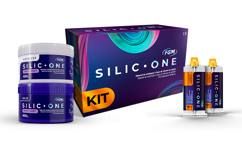 Silic One linija obuhvata različite formulacije adicionih silikona (A‑silicone) namenjenih za preciznu dentalnu otisnu tehniku i registraciju zagrižaja. U ponudi su varijante različite viskoznosti i pakovanja – od Bite Registration materijala, preko Clear i Light Body masa, do Putty i kombinovanih KIT opcija – koje omogućavaju tačno kopiranje detalja, visoku dimenzionalnu stabilnost i pouzdanu primenu u protetskim i restaurativnim procedurama.